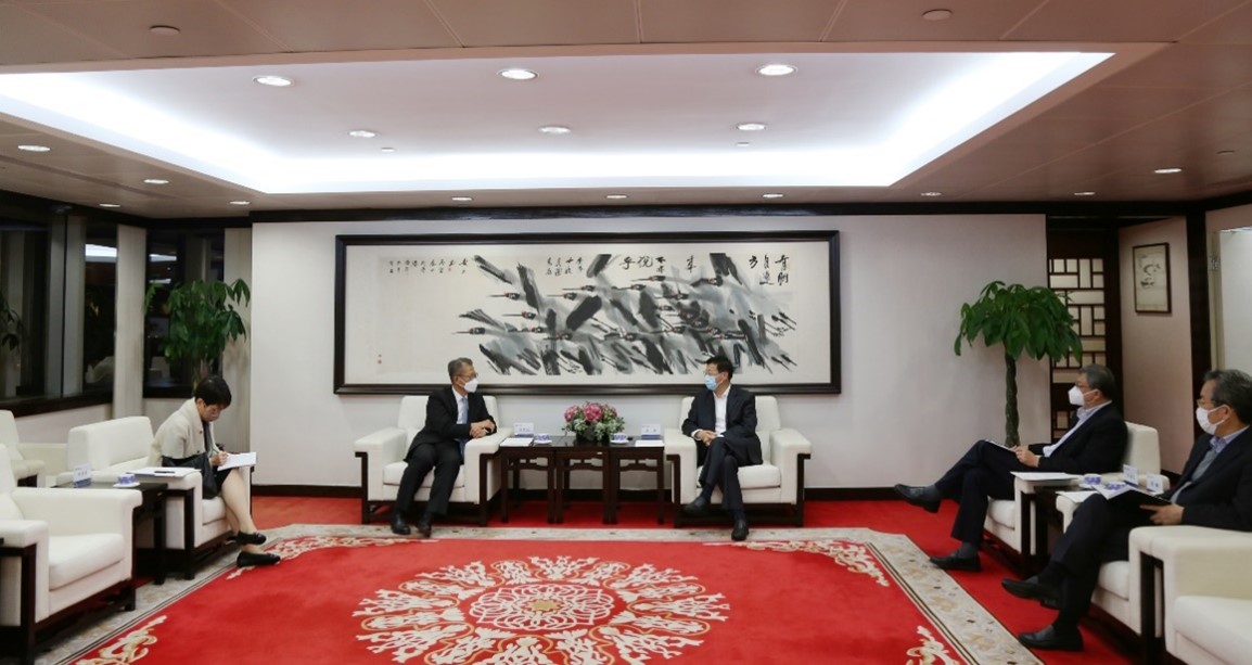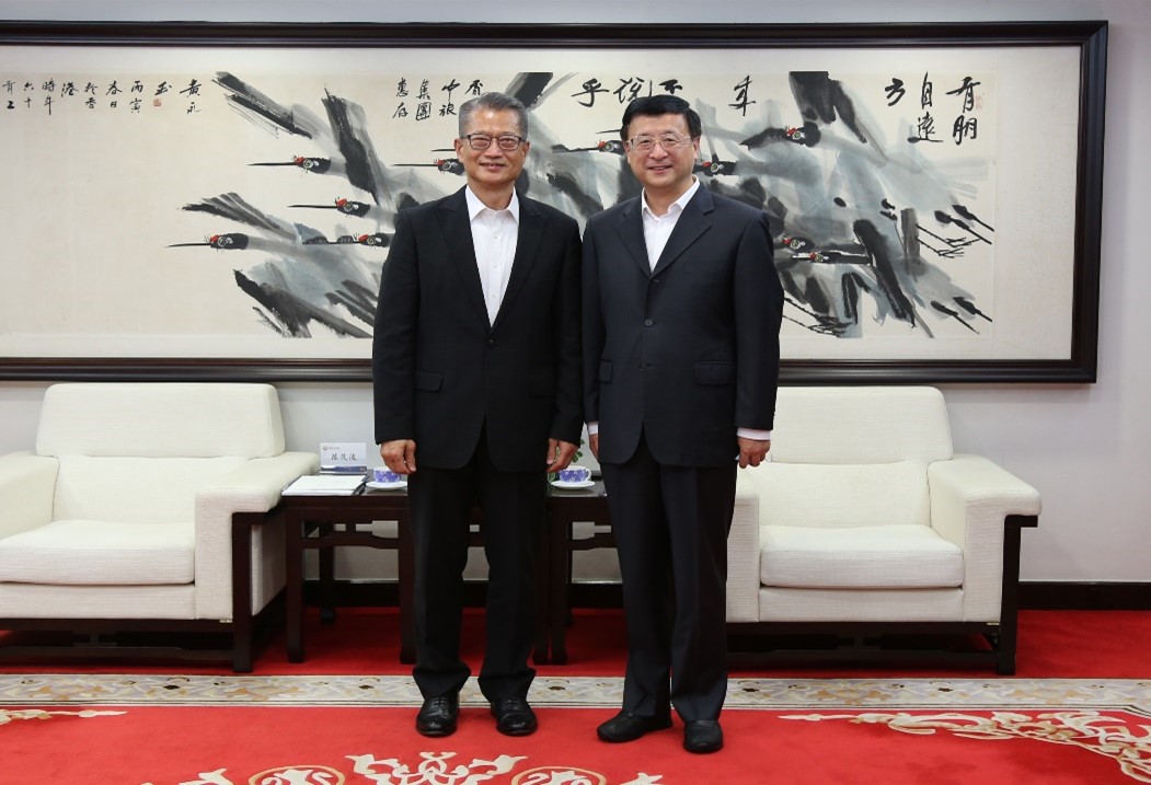 1月13日下午,集團陳寅董事長在香港集團大廈會見了到訪的香港特別行政區(qū)財政司陳茂波司長一行。