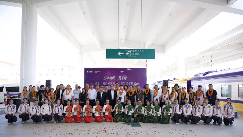 9月26日,“星光·瀾湄號”中老鐵路跨境旅游首發(fā)列車抵達老撾首都萬象,在萬象火車站舉行了接車儀式。萬象市信息文化與旅游廳副廳長坎昆·拜拉特、老中鐵路有限公司萬象站和萬象運管中心負責人、老撾當?shù)厝A人華僑和旅游業(yè)代表參加了接車儀式。