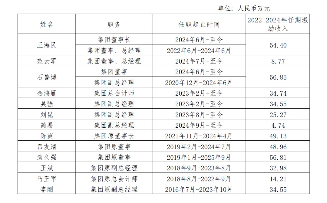中國(guó)旅游集團(tuán)有限公司企業(yè)負(fù)責(zé)人2022-2024年任期激勵(lì)收入情況