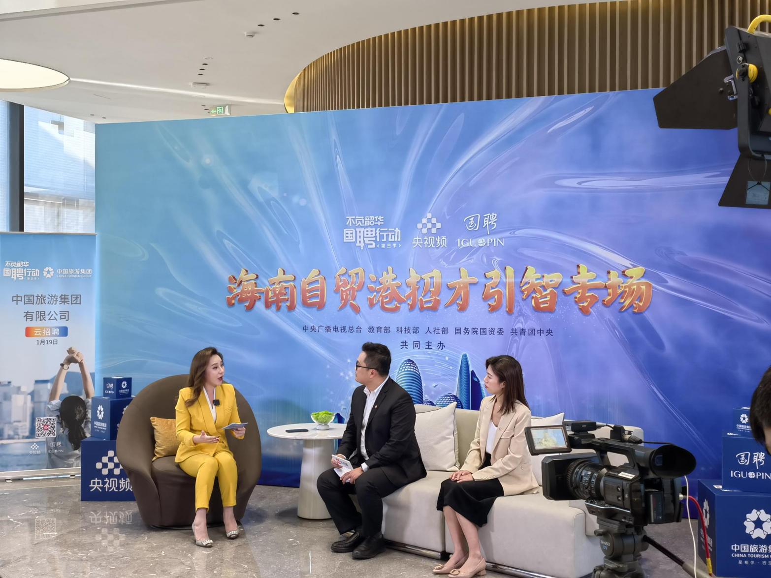 1月19日下午,由中央廣播電視總臺攜手教育部、科技部、人社部、國務院國資委、共青團中央等六部委共同發(fā)起,央視頻攜手國投人力共同主辦的“國聘行動”第三季——“不負韶華 國聘行動”之海南自貿(mào)港招才引智專場在海口舉辦,集團作為首場直播企業(yè),攜300余個崗位,在??趪H免稅城接待中心開啟線上“云”招聘直播。